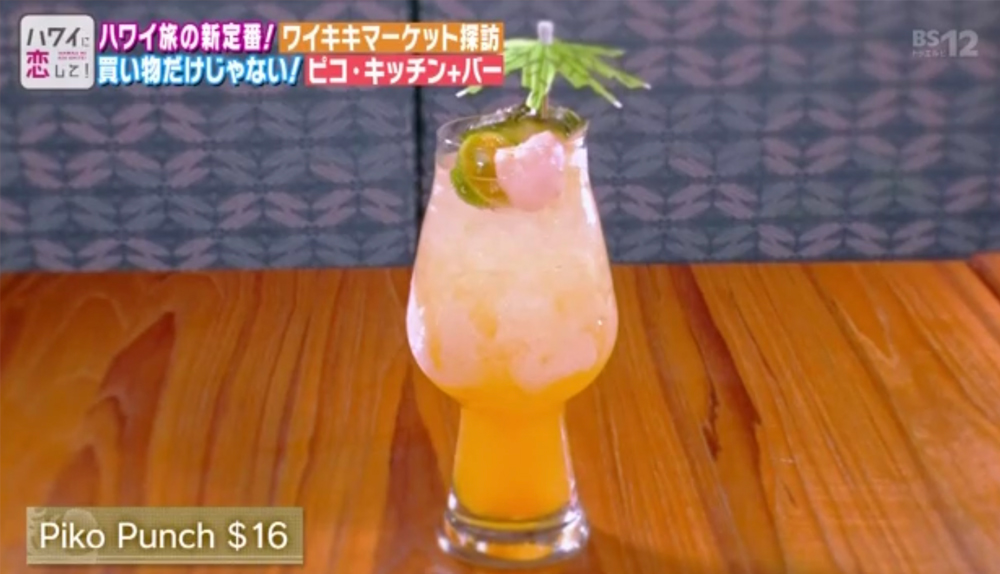 リリコイとマンゴーのジュース+ローカルのコハナラム+スパークリングワインの「Piko Punch($16.00)」