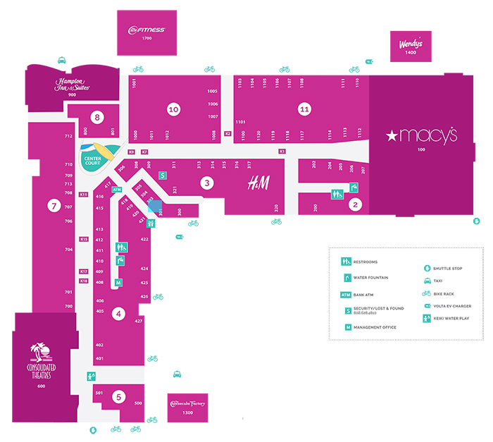 デパートのメイシーズをアンカーストアに、約100店舗のショップとレストラン、映画館などが入っています。総面積は、140万平方フィート(東京ドーム約2.8個分)です。