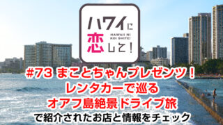 グルメ ハワイに恋して!「#73 まことちゃんプレゼンツ!レンタカーで巡るオアフ島絶景ドライブ旅」で紹介されたお店と情報をチェック こんにちは、コージです。一昨日、BS12で「ハワイに恋して!」の第73回目「#73 まことちゃんプレゼンツ!レンタカーで巡るオアフ島絶景ドライブ旅」の放送がありました。今回もハワイのサーシャさんと日本のまことちゃんをリモートでつないでの放送... 2021.07.14 グルメハワイ関連TV